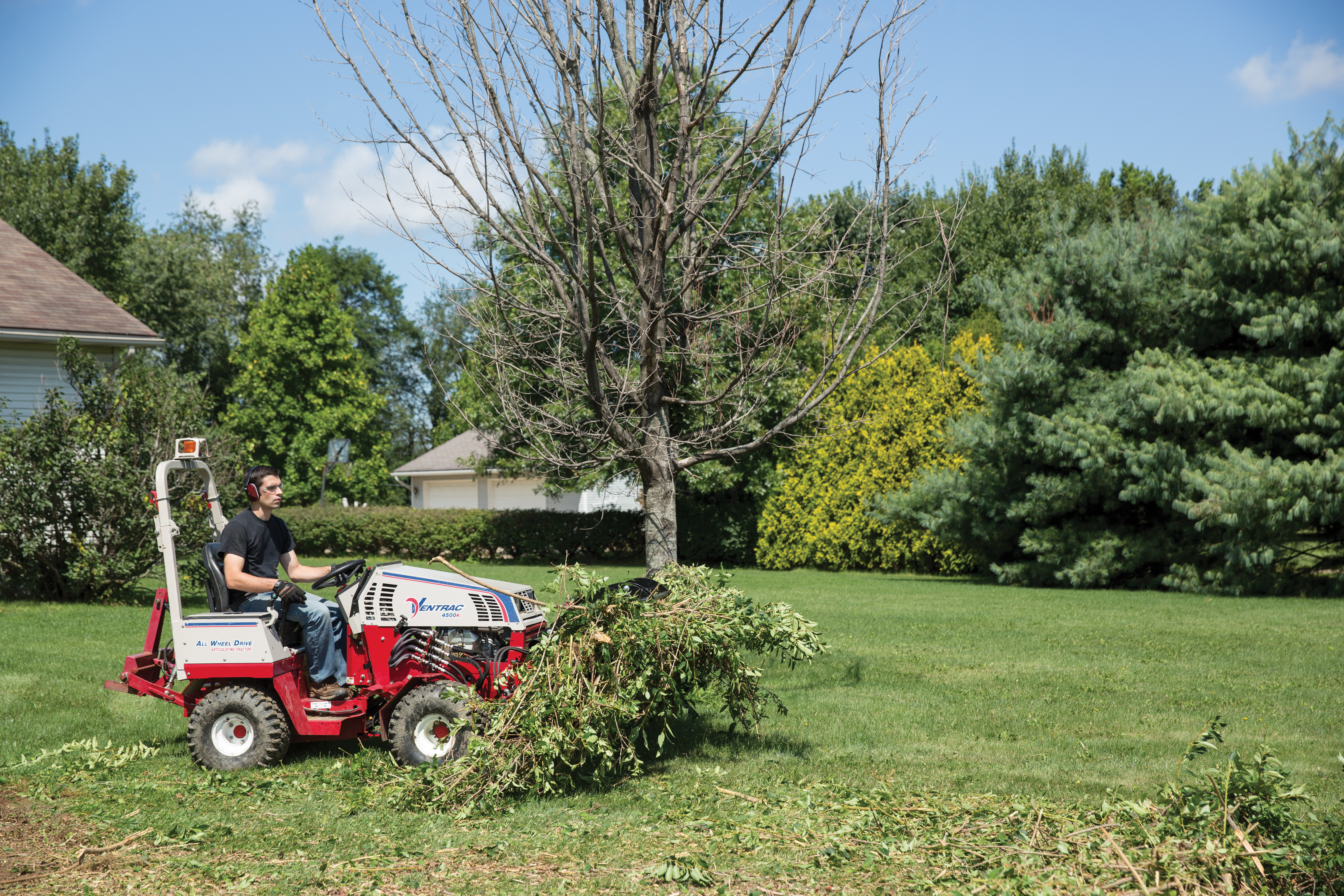 Ventrac 4500 and Power Bucket - Move piles of brush and tree branches in one trip with the Power Bucket and optional Grapple.