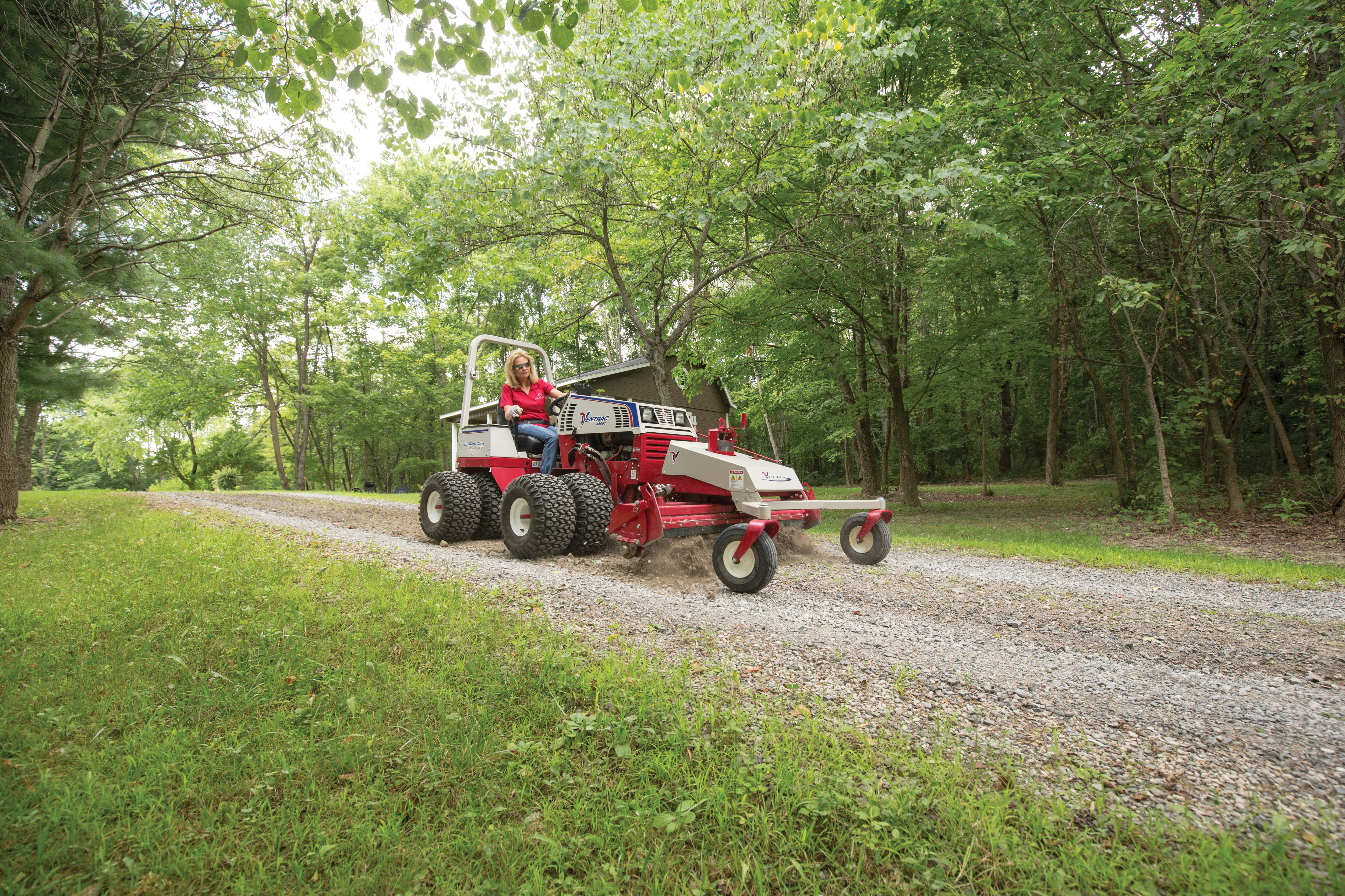 | Description | The Ventrac 4500 and Power Rake is like having your own compact road grader to level driveways. |