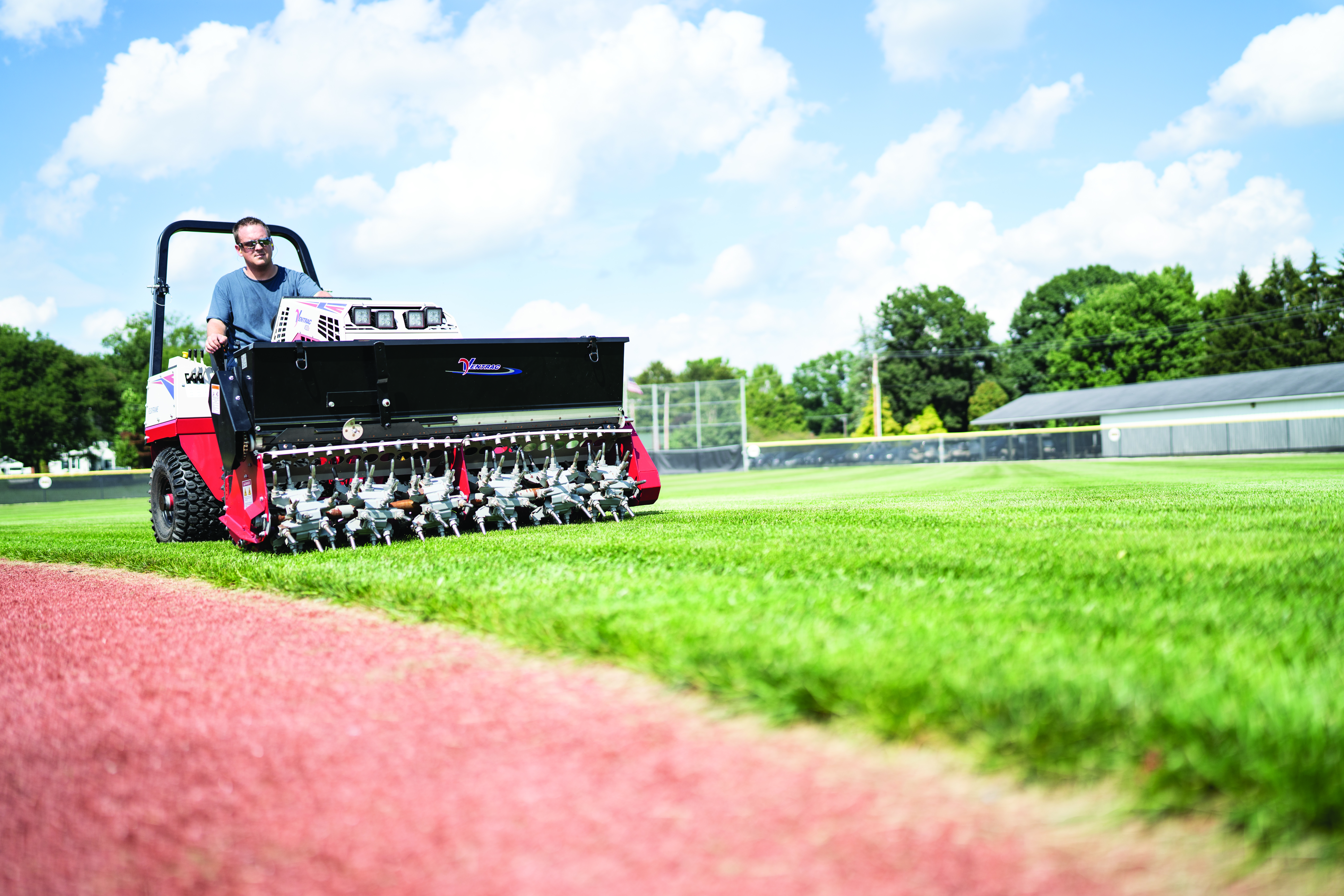 | Description | Coreless aeration of a baseball field with the Ventrac Aera-Vator, an essential addition to municipal mowers and school mowing. Lawn aerator equipment. |