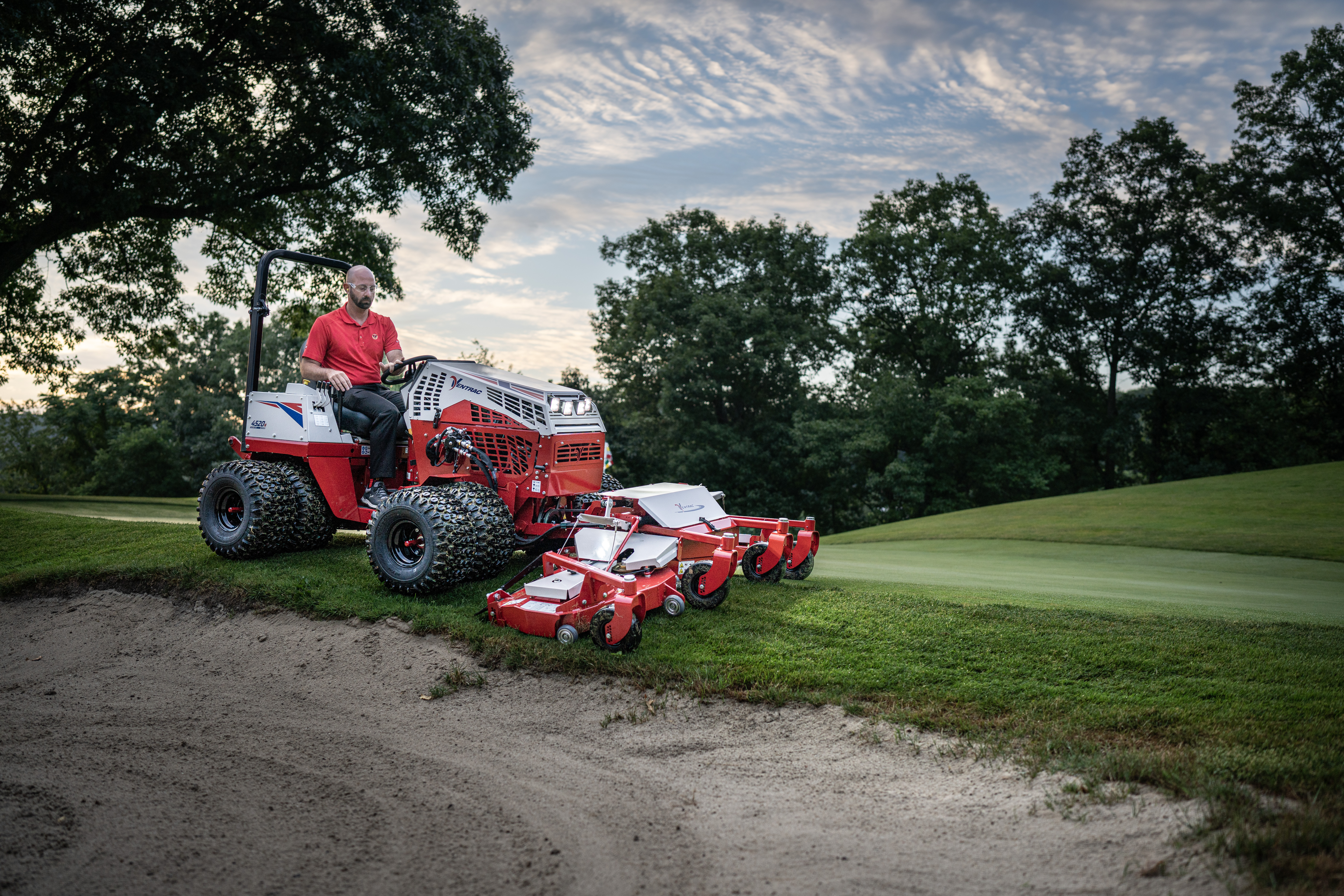 Ventrac Contour Mower - The Ventrac Contour Mower excels in maintaining golf course bunkers, thanks to its 83-inch mowing width and independently floating decks. With up to 40 degrees of motion and rear discharge, it delivers a clean, precise cut while accommodating complex terrain.