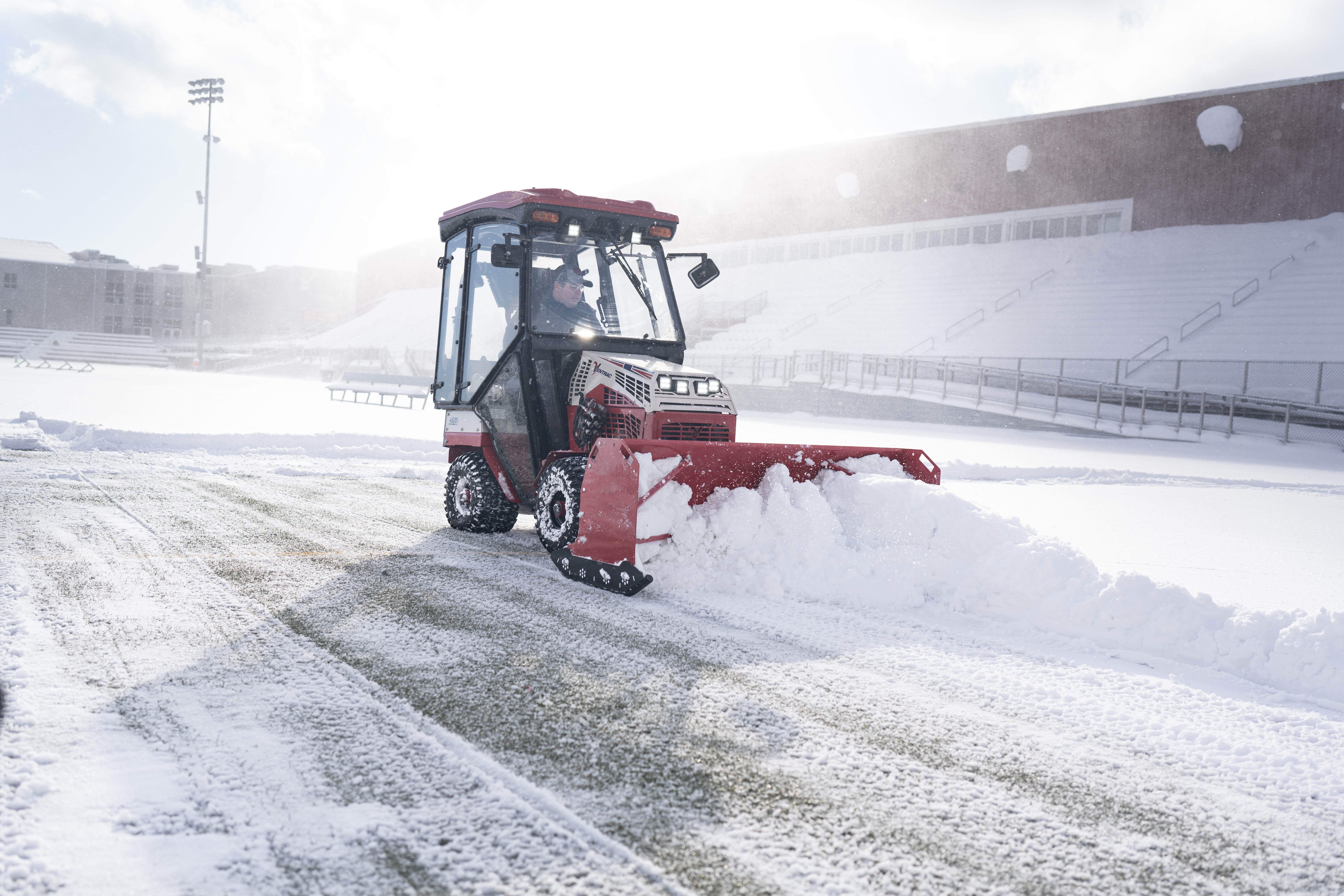 | Description | The Ventrac Box Plow being used to clear snow from turf. The light footprint allows the tractor to work on turf without causing damage. |