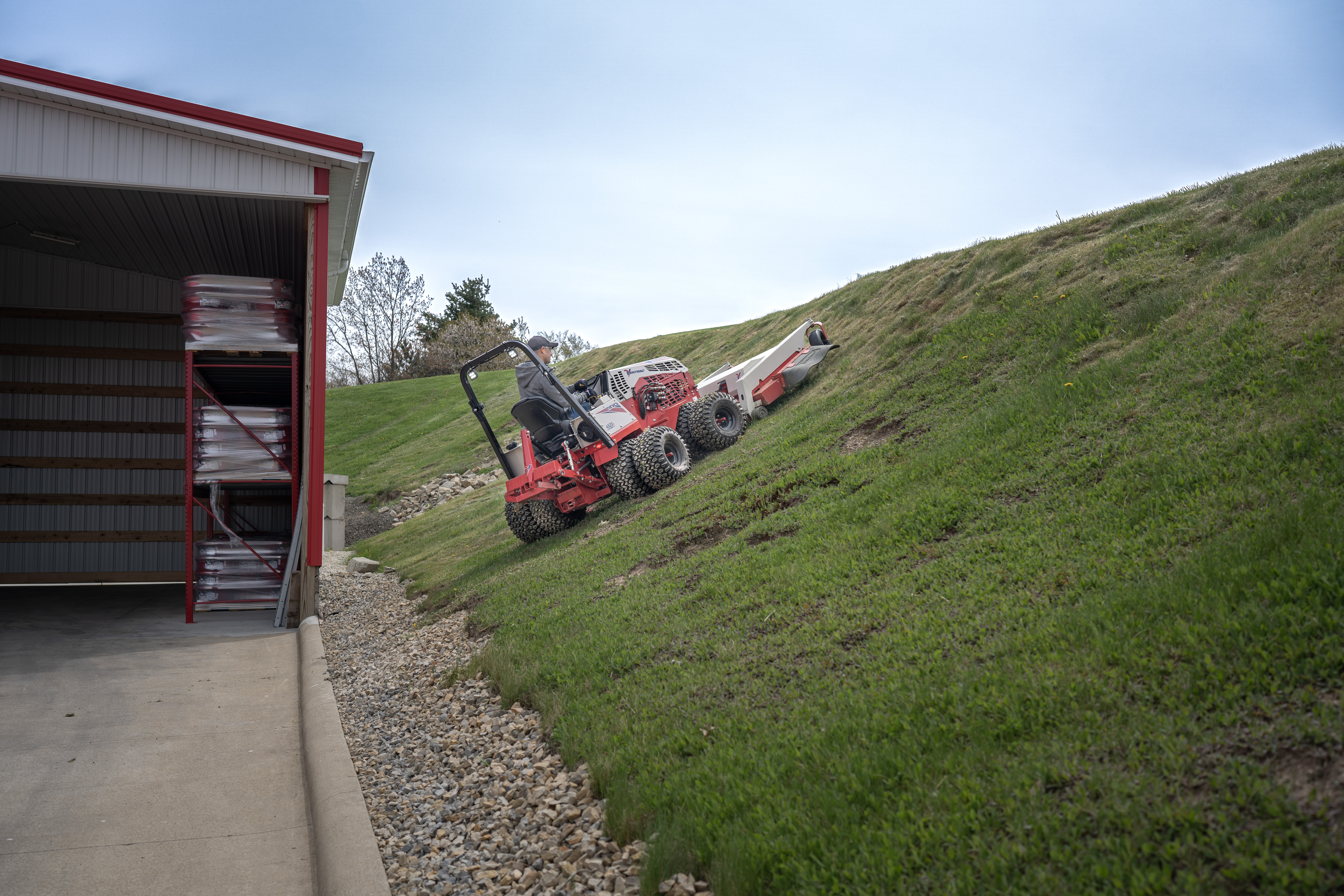 | Description | The Ventrac Finish Mower taking on a steep hill that would normally require string trimmers. With its unmatched slope capability, Ventrac handles tough angles with ease—delivering a clean, even cut where other brands can’t. |